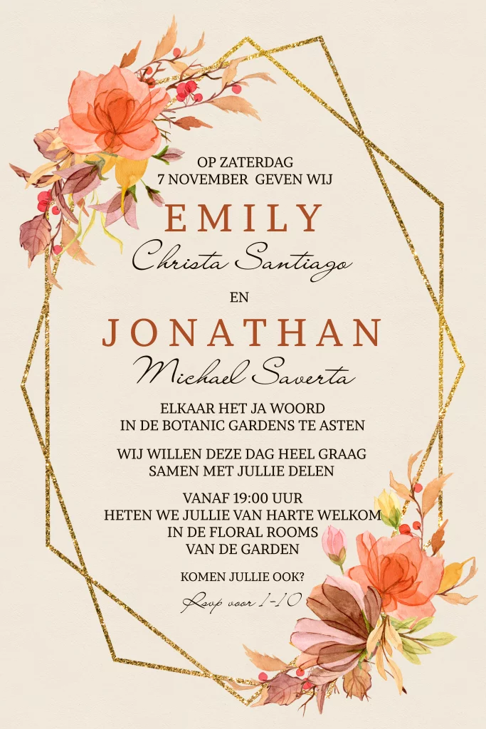 Trouwkaarten voor herfst gouden geometrische vormen