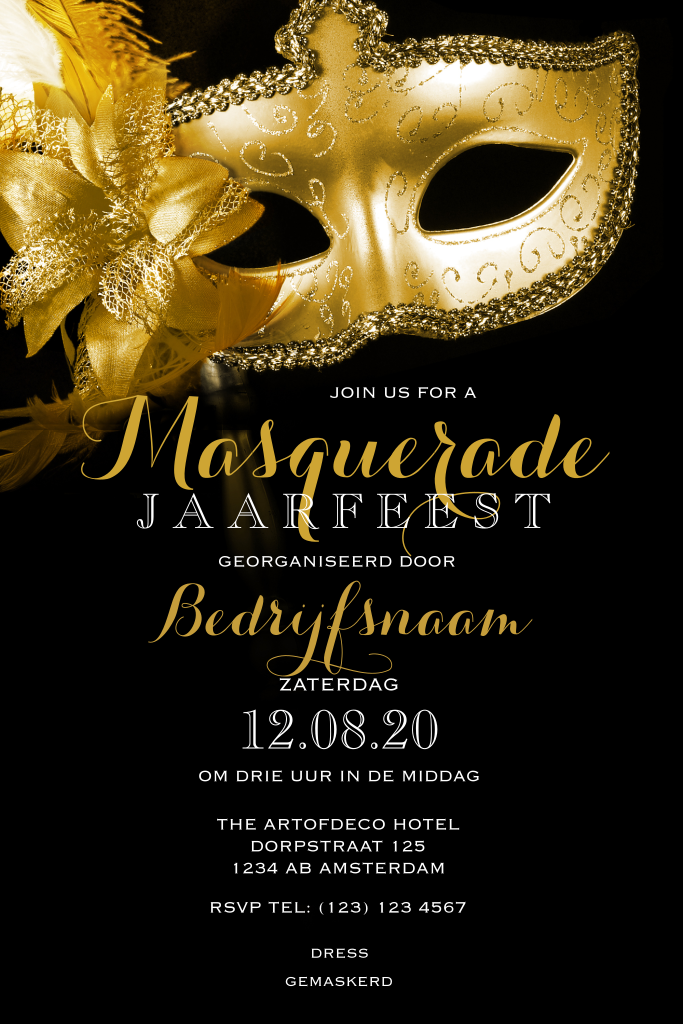 Uitnodiging gemaskerd bal stijl met goud venetiaans masker