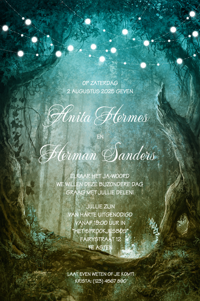 Uitnodiging voor sprookjeshuwelijk in het bos