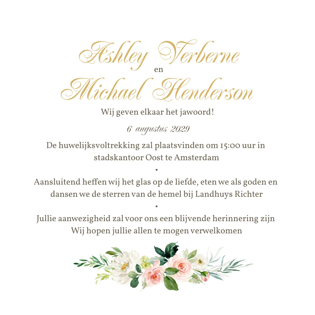 Uitnodiging voor een huwelijk met bloemen