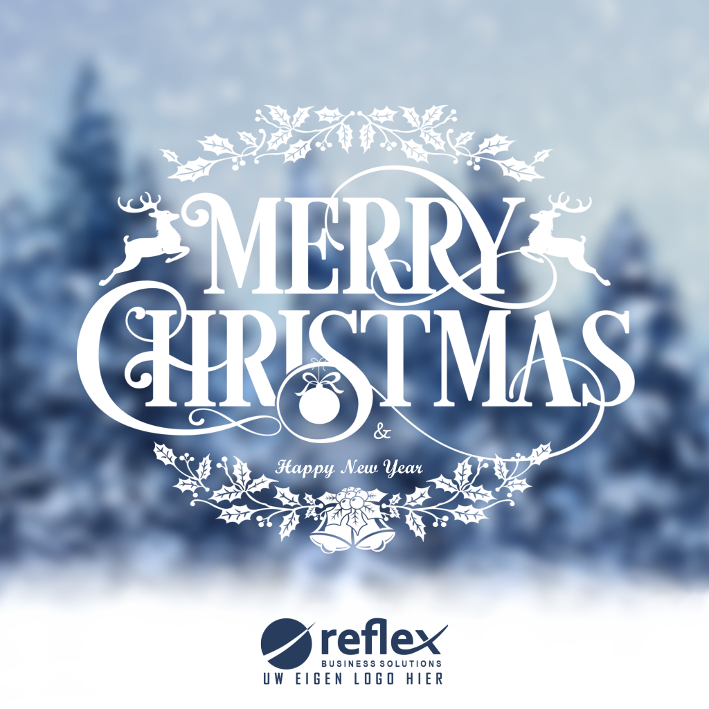Mooie zakelijke kerstkaart met typografie en een winters landschap op de achtergrond. Deze stijlvolle kaart is eenvoudig te personaliseren en is geschikt voor elke branch. (5719)