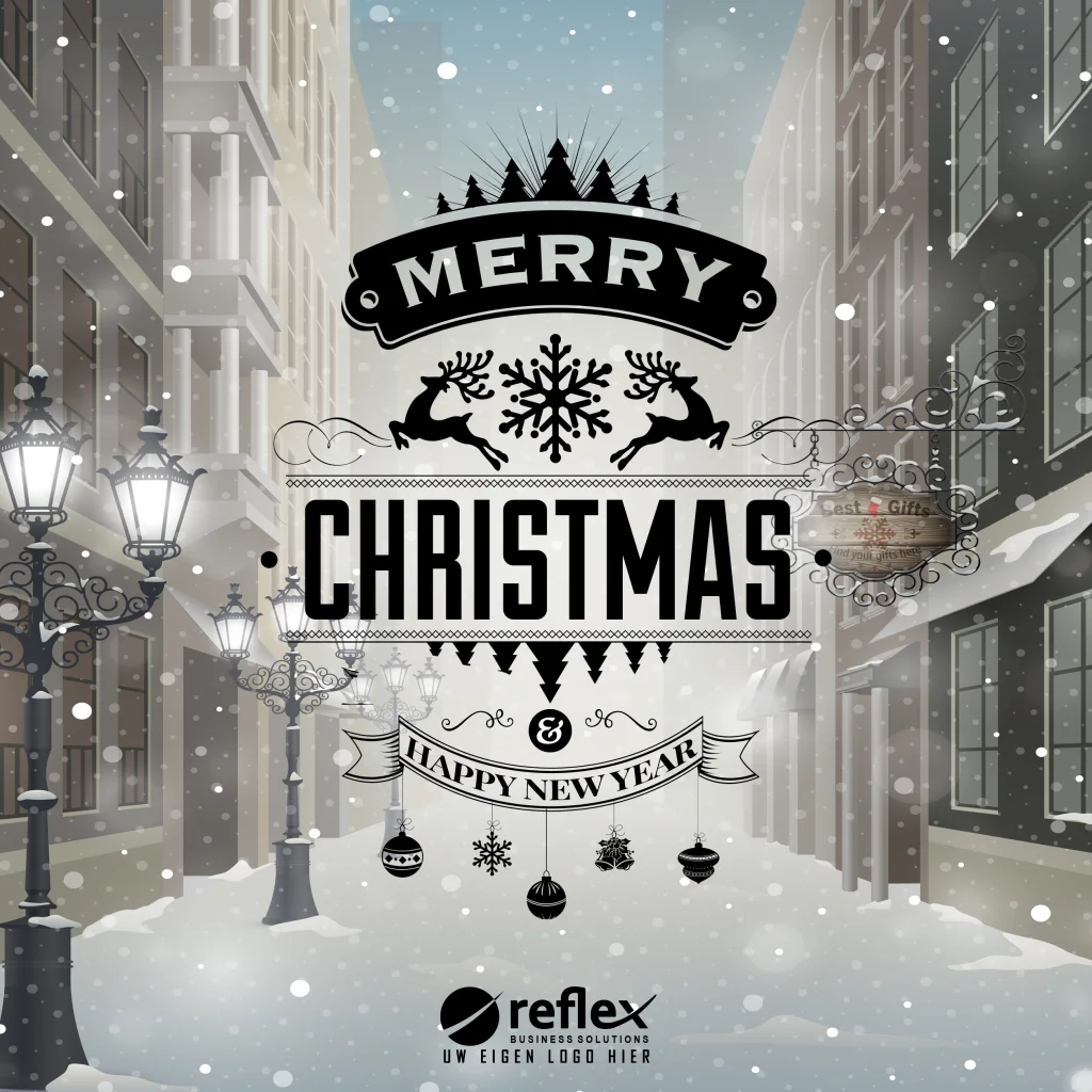 Moderne zakelijke kerstkaart met logo en typografie winterstraat