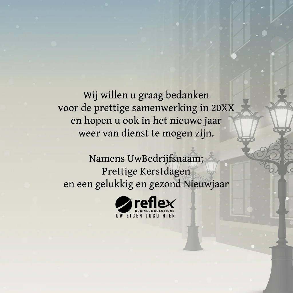 Moderne zakelijke kerstkaart met logo en typografie winterstraat. (20439)