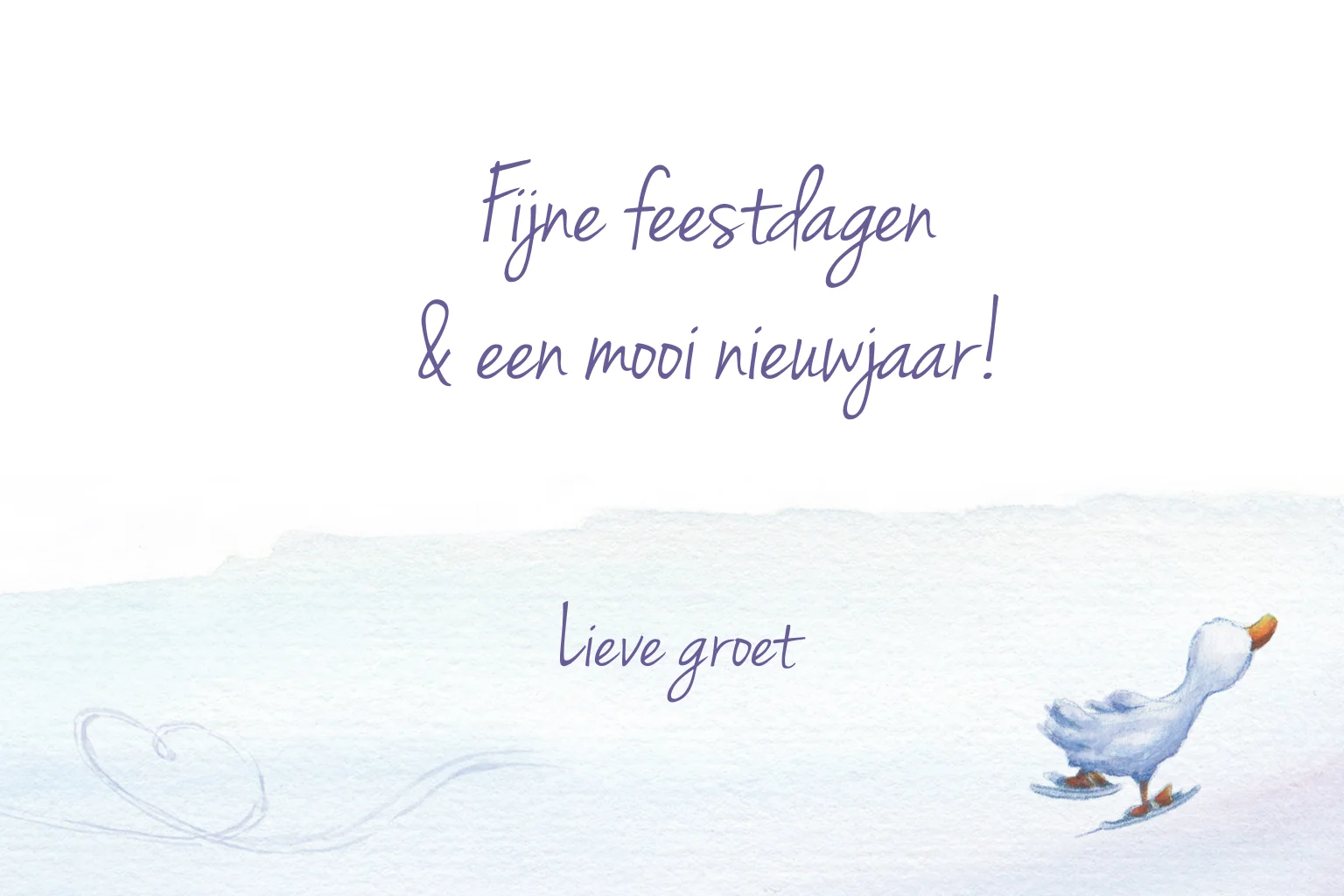 Kerstkaart met illustratie van een lief eendje dat in een hartjesvorm schaatst. (24227)