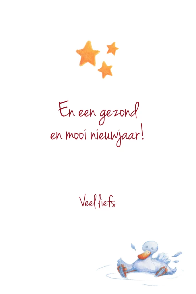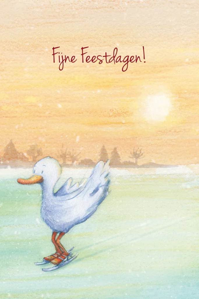 Lieve kerstkaart met eendje dat schaatst in de winterzon. (24229)