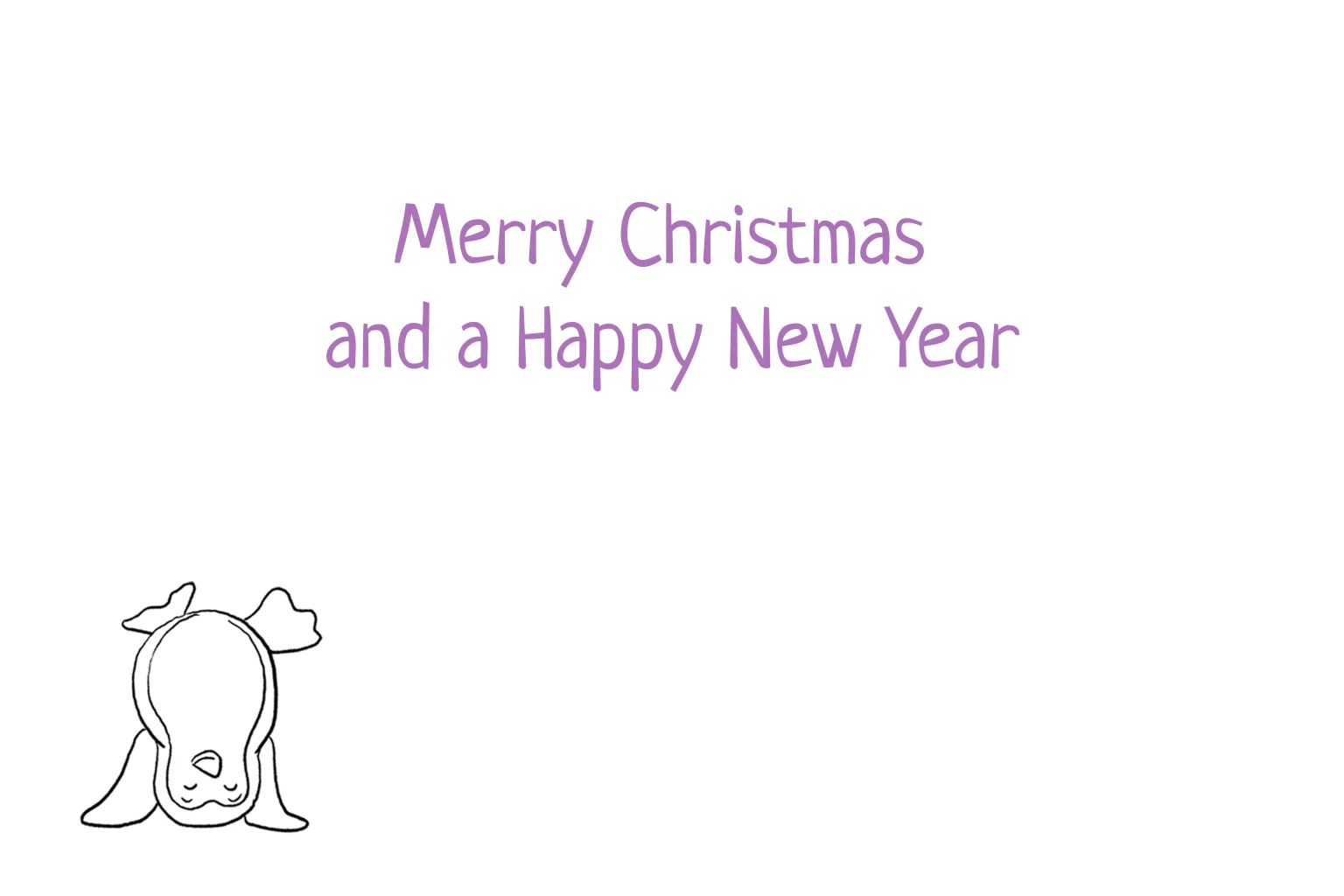Vrolijke kerstkaart met illustratie van een toren acrobatische pinguïns in de sneeuw. (24303)