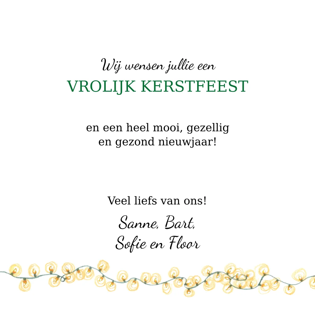 Lieve geïllustreerde kerstkaart van een eekhoorn met kerstlampjes