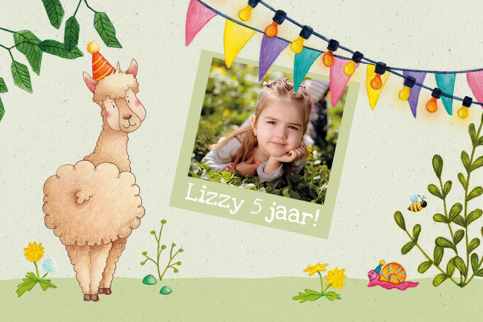 Uitnodiging kinderfeestje 5 jaar alpaca en slingers