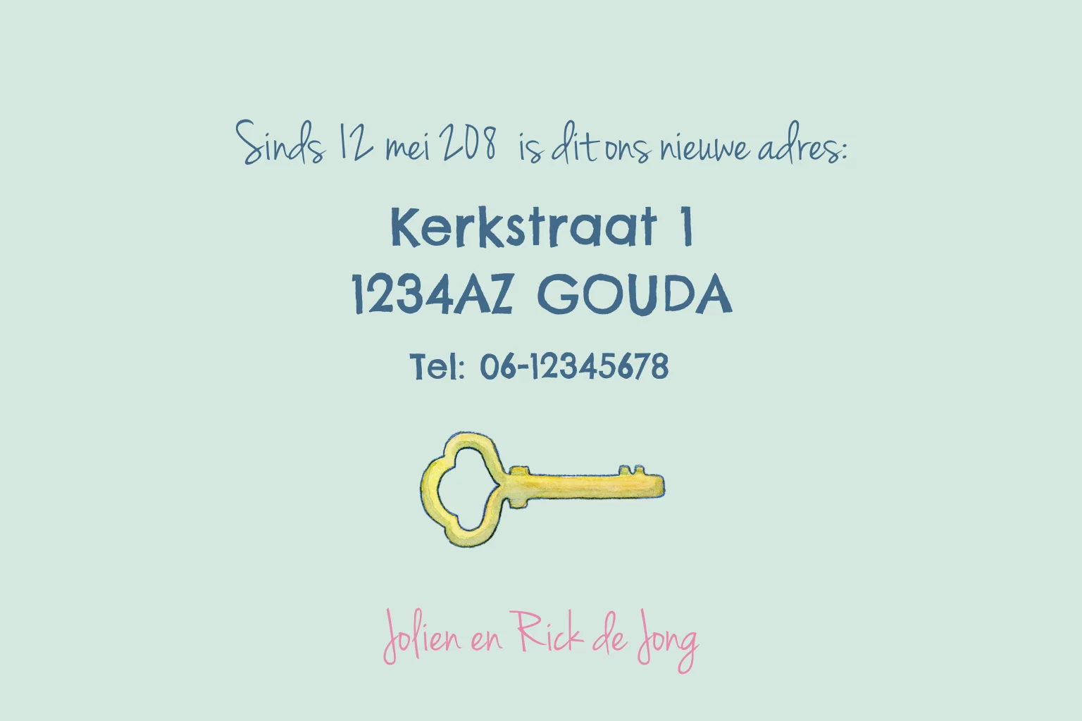 Vrolijk geïllustreerde verhuiskaart met allerlei verschillende sleutels in diverse kleuren. (21759)