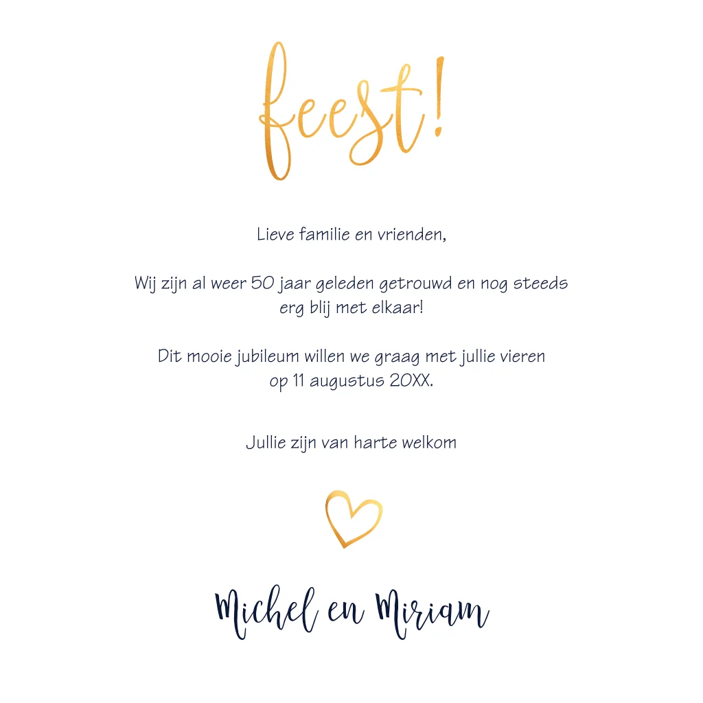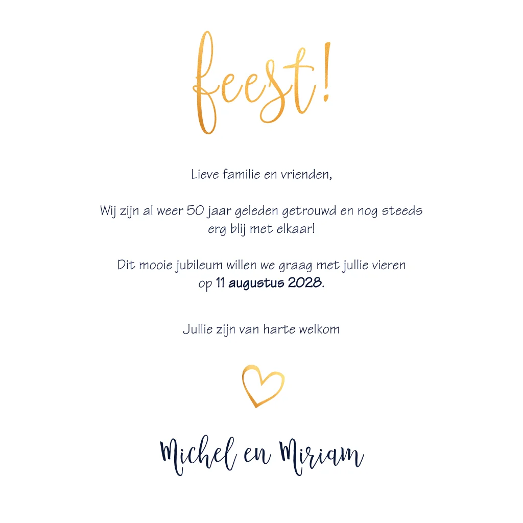 Jubileum uitnodiging 50 jaar getrouwd foto en goud kleurig