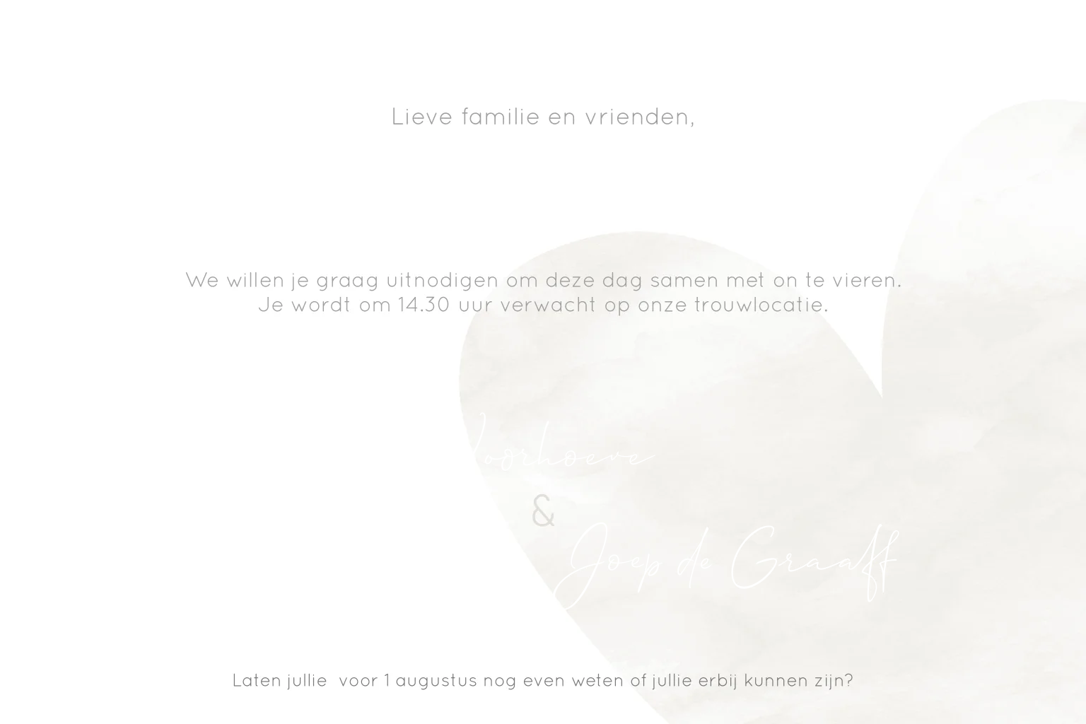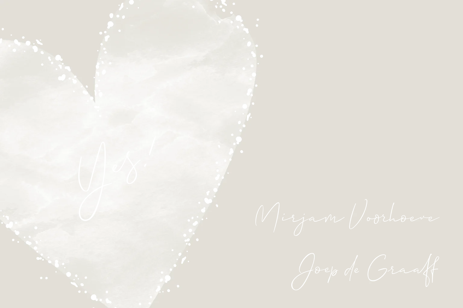 Elegante Trouwkaart met goud en wit hart omringend door goudfolie spetters. Personaliseer in onze editor voor jullie speciale dag. (30316)