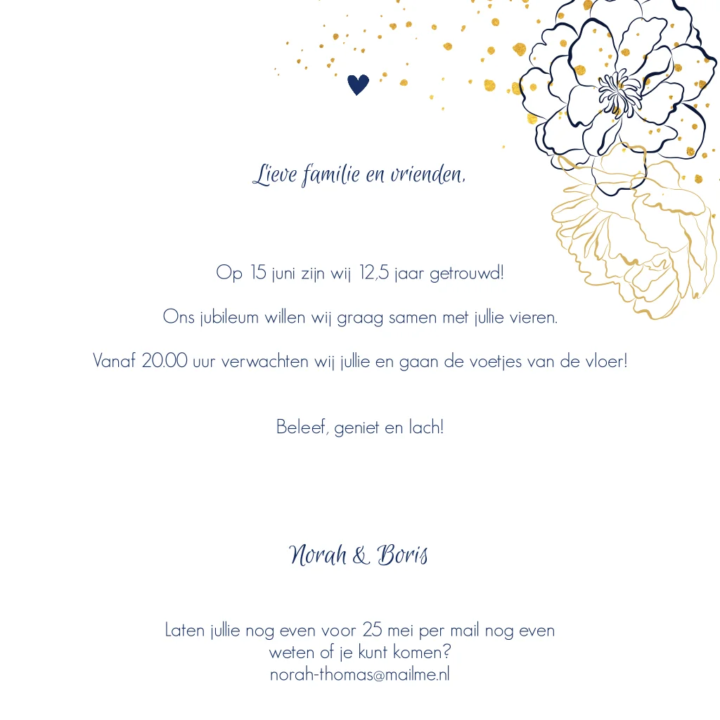 Mooie uitnodiging voor 12,5 jarig jubileum foto gouden accenten
