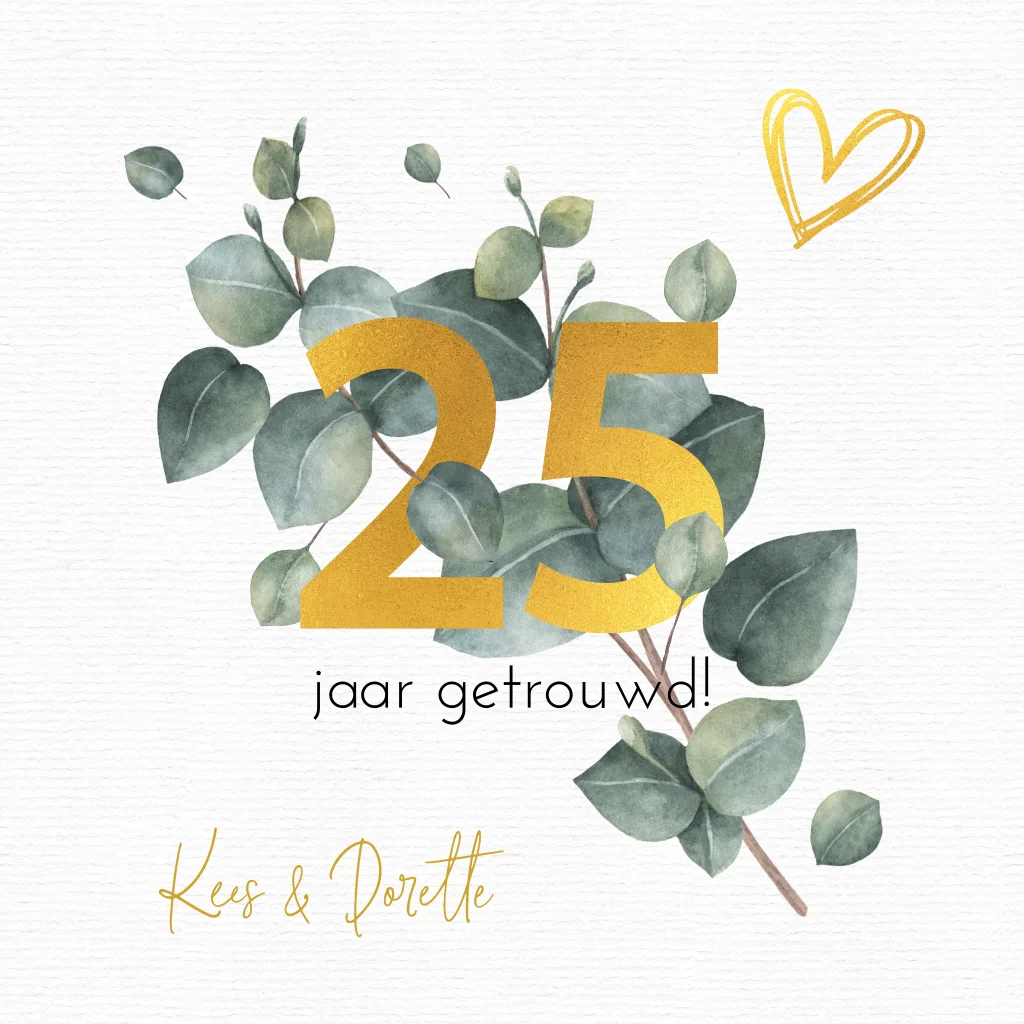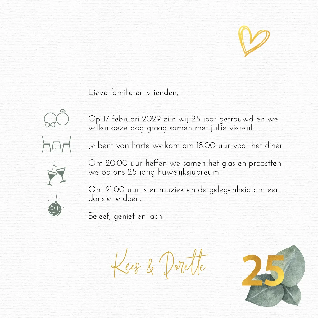 Uitnodiging jubileum 25 jaar getrouwd met eucalyptus en goud-look