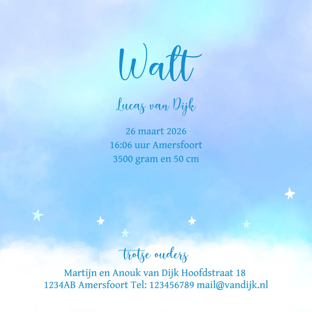 Geboortekaartje kasteel wolk sterren jongen