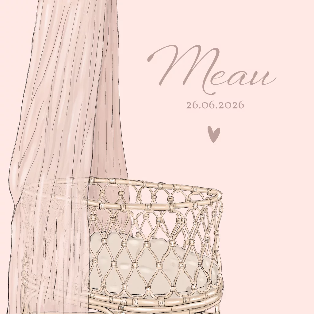 Geboortekaartje meisje met wiegje hemeltje lichtroze