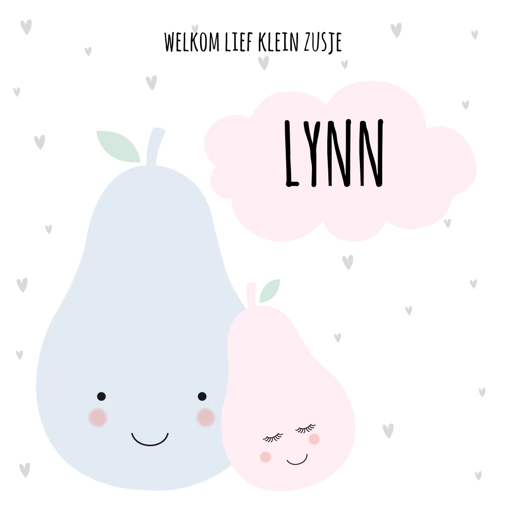 Grappig geboortekaartje 2e kindje zusje peer wolkje pastel