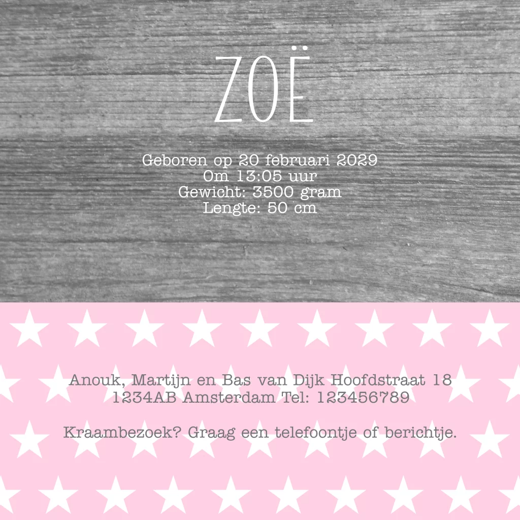 Een lief en stoer geboortekaartje zusje met letterslinger, foto en sterren, voor de geboorte van een zusje. (4943)