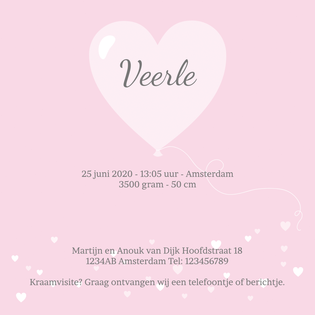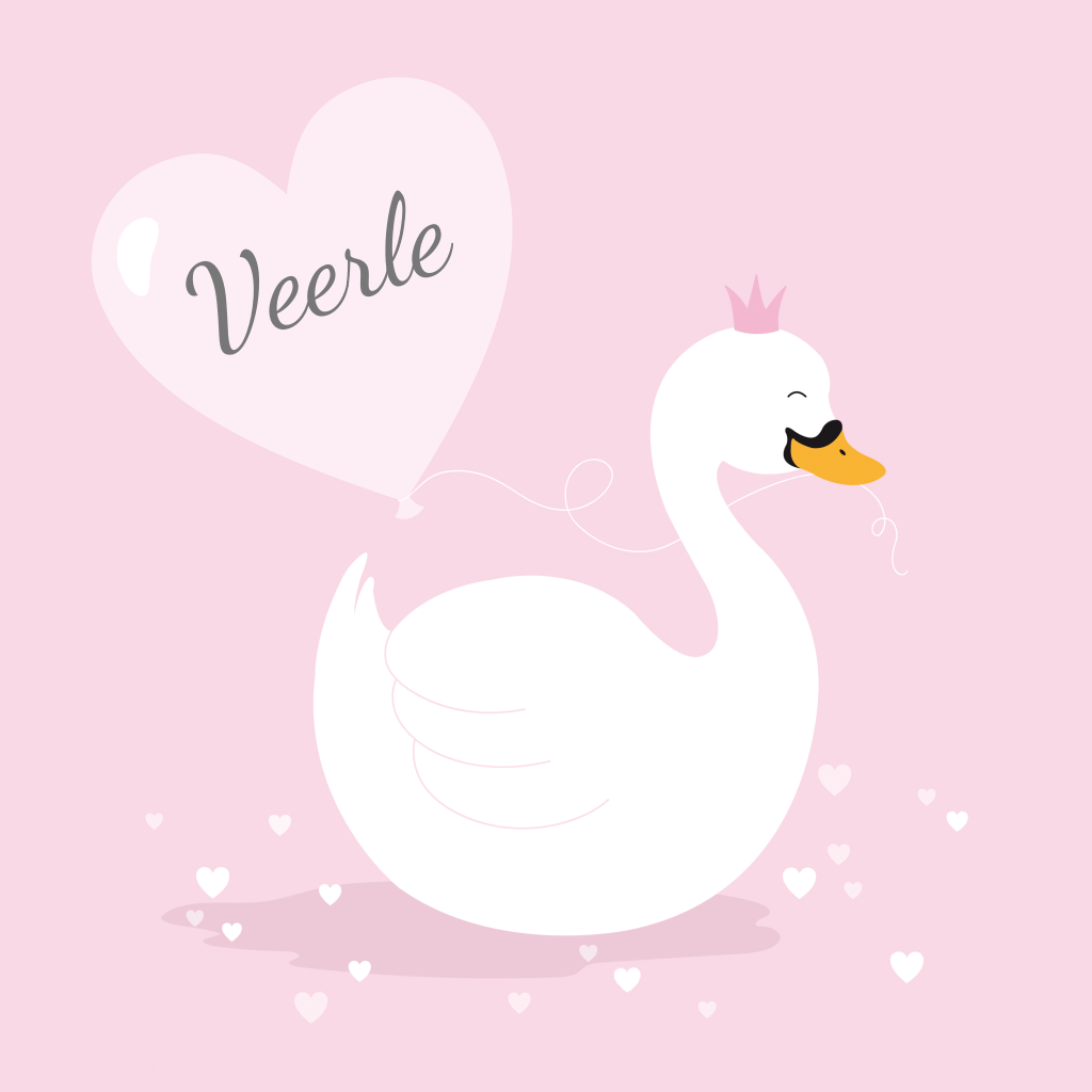 Een lief geboortekaartje met een zwaan, hartjes en ballon voor een meisje. (3540)