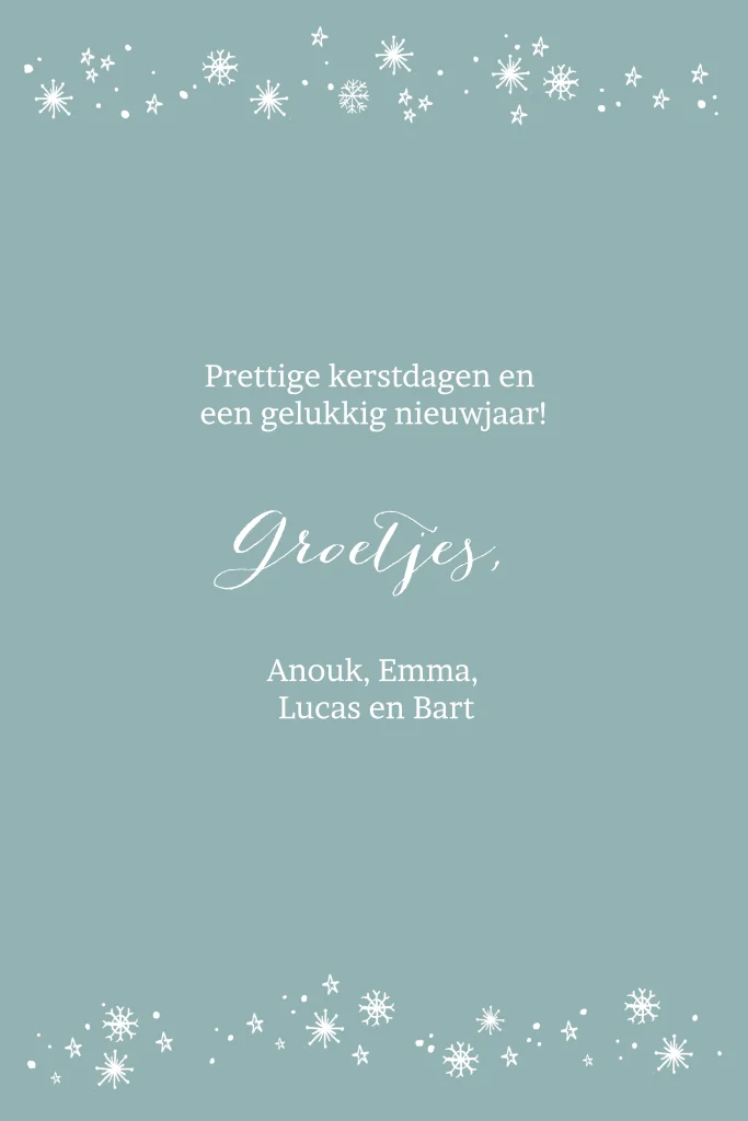 Kerstkaart foto hond handlettering sneeuw sterren