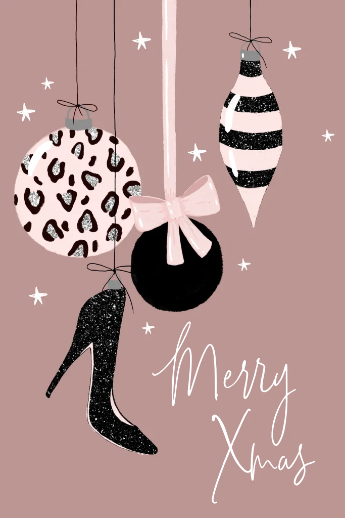 Kerstkaart hippe kerstballen glitterlook