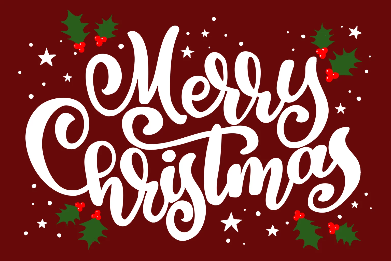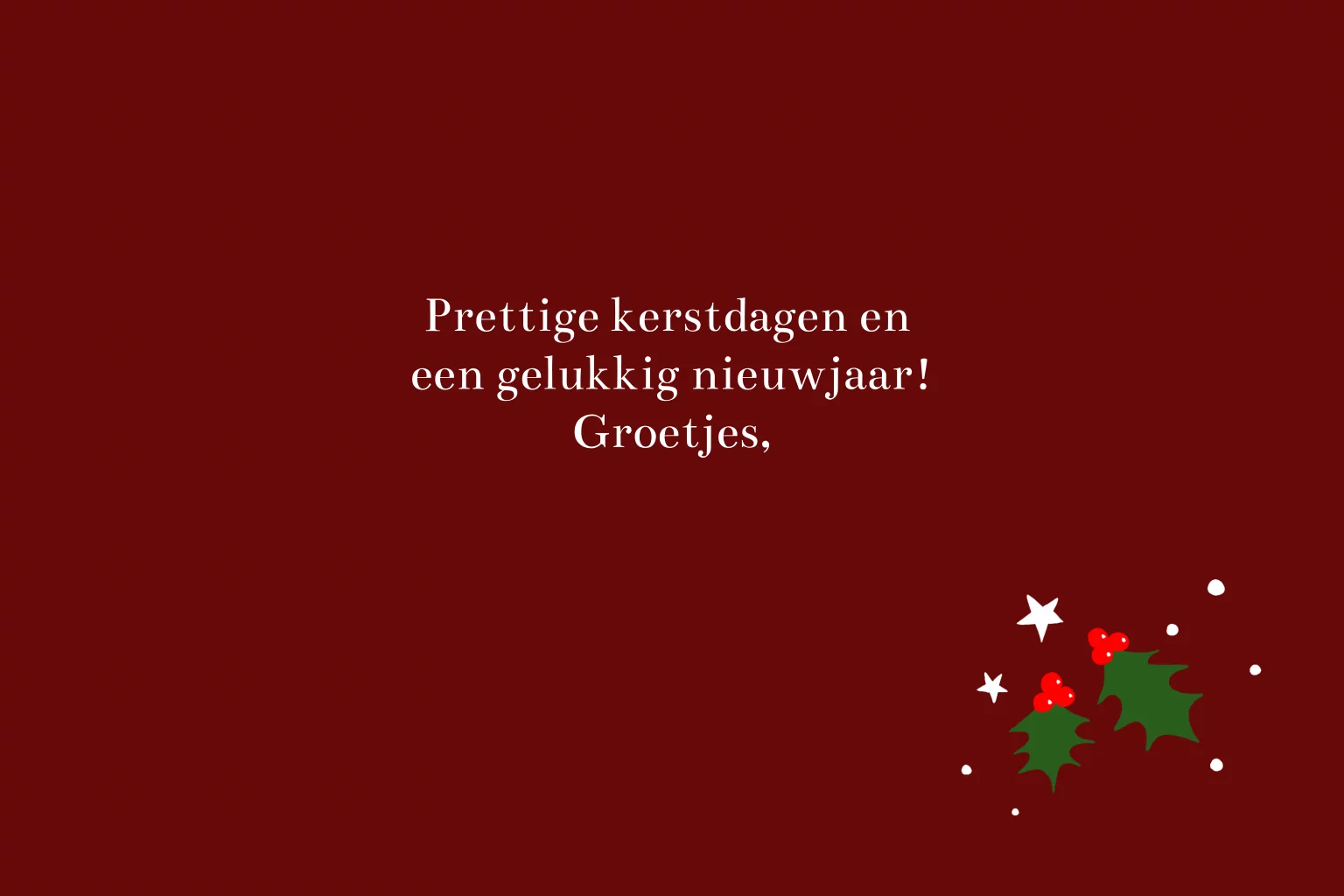 Kerstkaart Merry Christmas tekst sterren en hulst bladeren