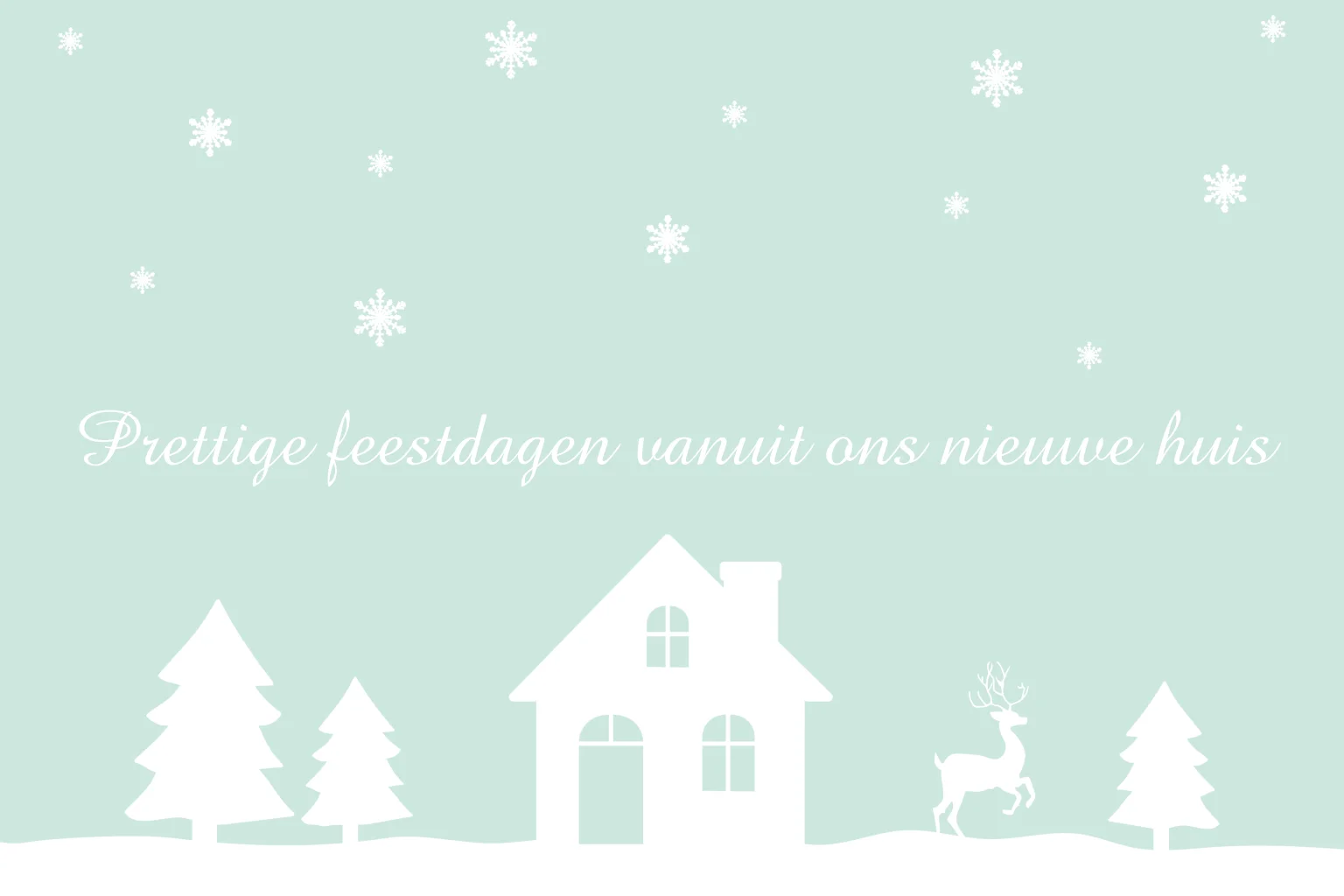 Kerstkaart verhuiskaart huisje sneeuw mint