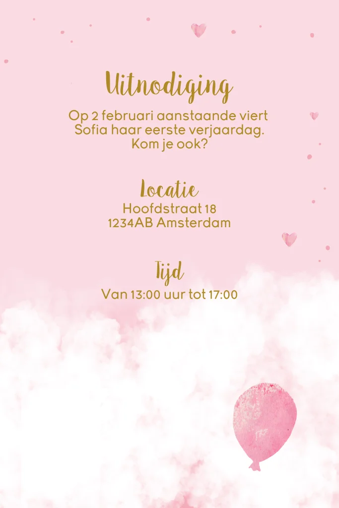 Kinderfeestje uitnodiging regenboog foto ballonnen meisje