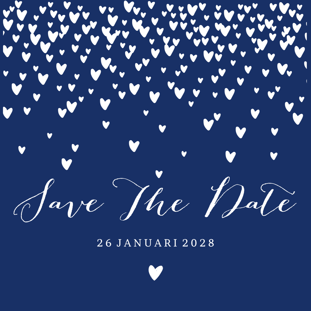 Een stijlvolle save the date kaart met hartjesregen in goudfolie. Alle kleuren zijn aanpasbaar. Pas ook de teksten aan. (20866)