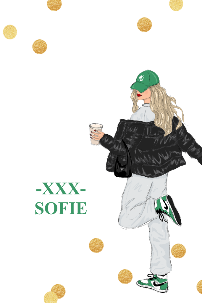 Een hippe uitnodiging voor een verjaardagsfeest, in magazine stijl met fashion illustratie en goudkleurige confetti. Pas zelf de teksten aan. (23194)