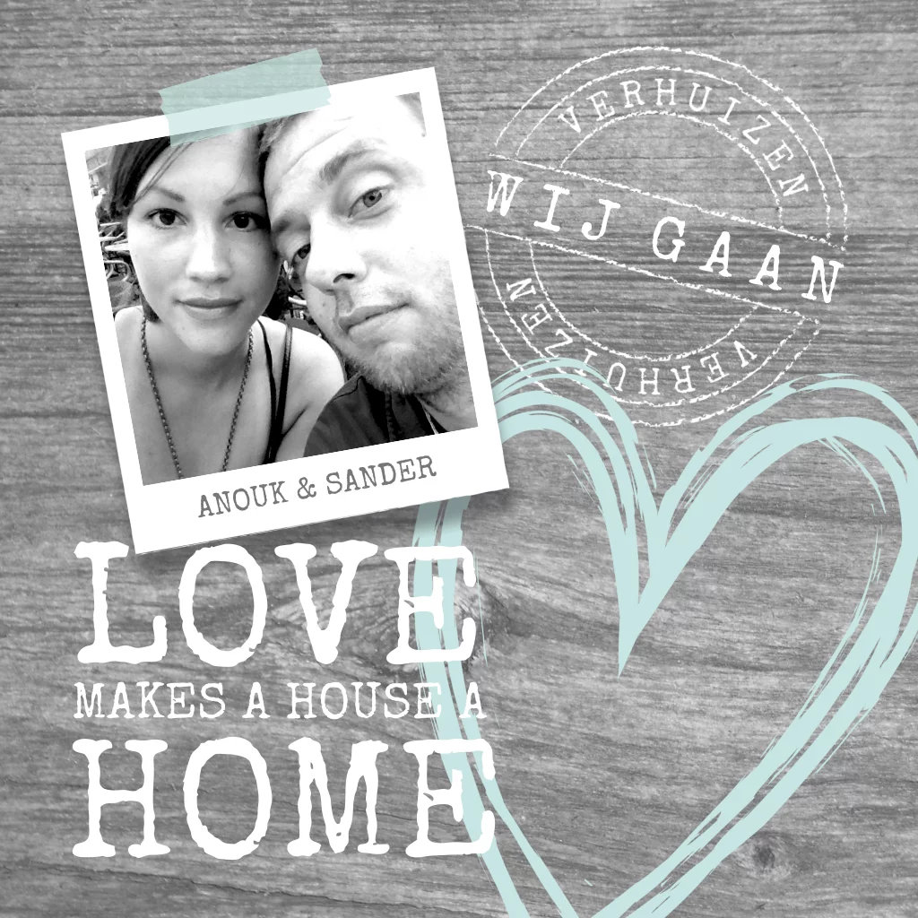 Een stoere verhuiskaart met foto, stempel, ster en houtlook. (4990)