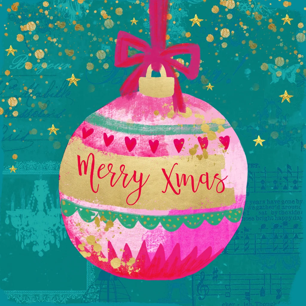 Zakelijke kerstkaart kleurrijke kerstbal goudlook