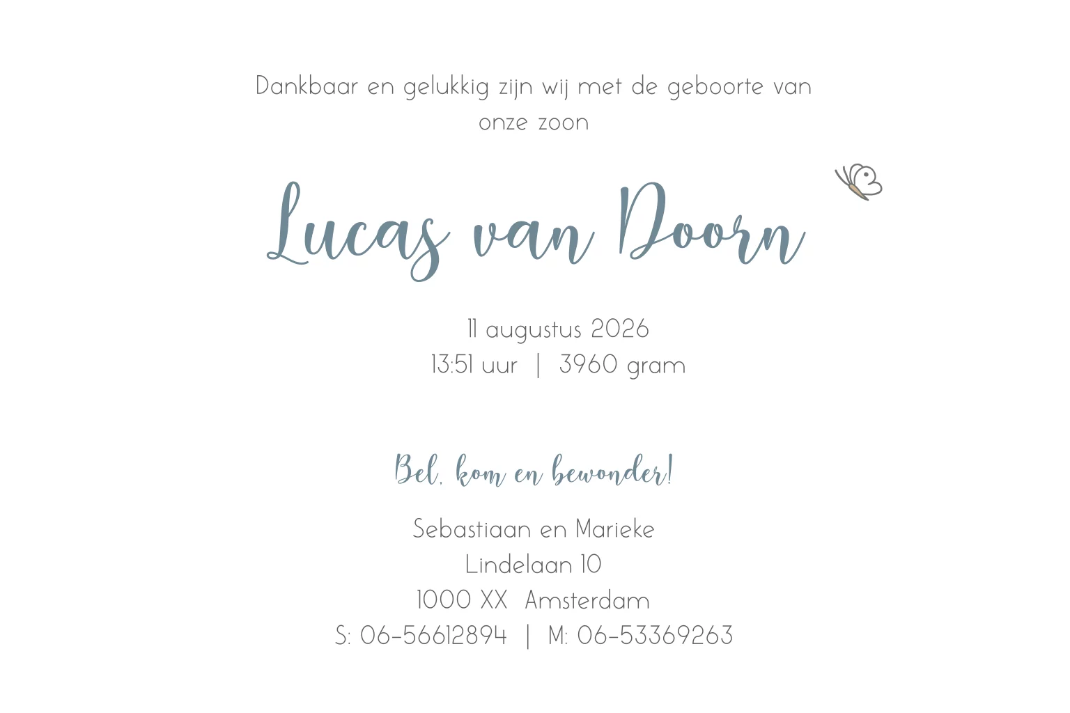 Geboortekaartje baby jongen boom hond