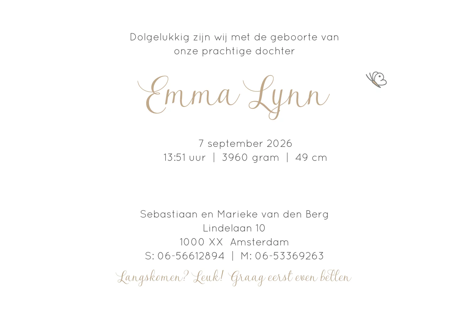 Geboortekaartje baby met papa en mama