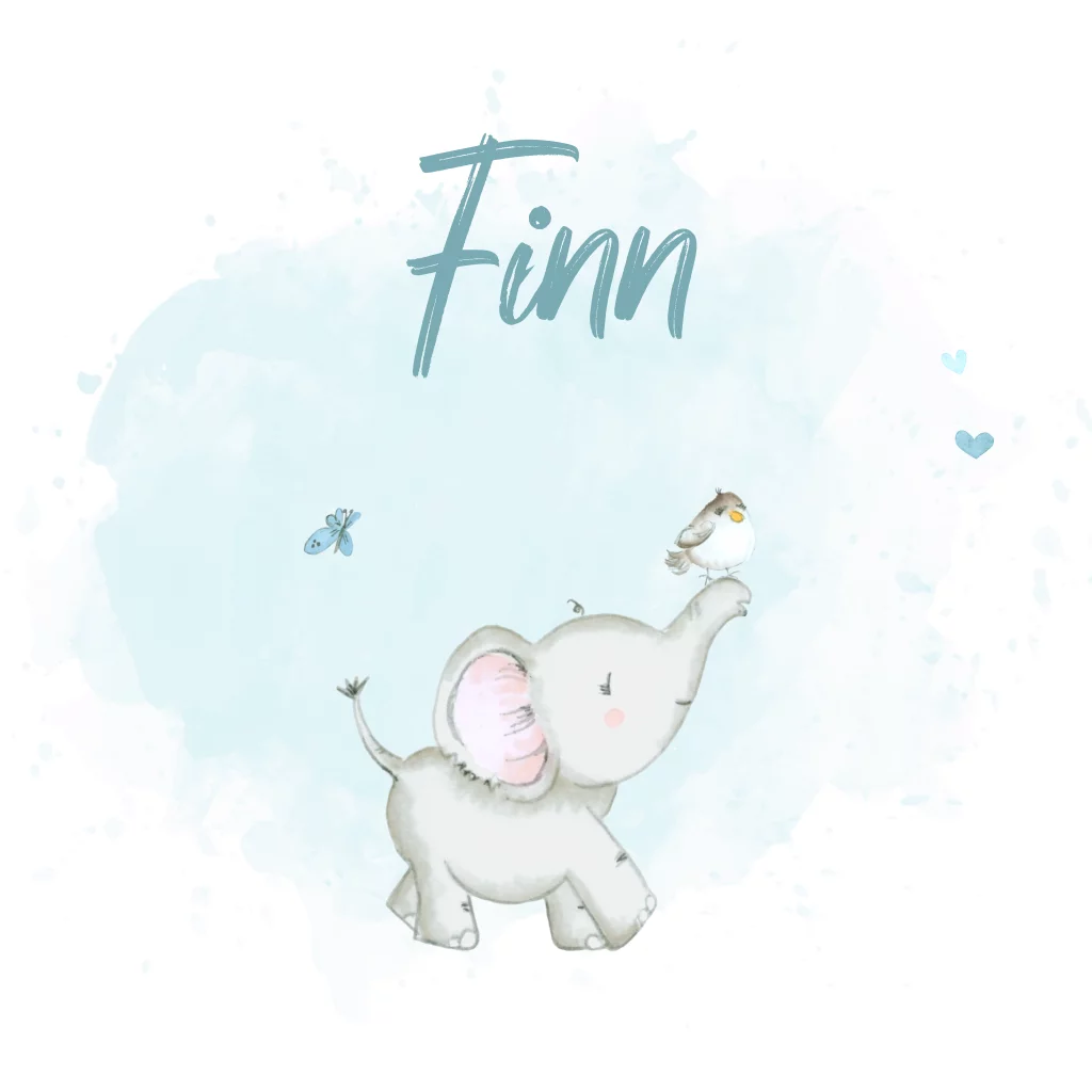 Geboortekaartje jongen met olifantje met vogel op slurf