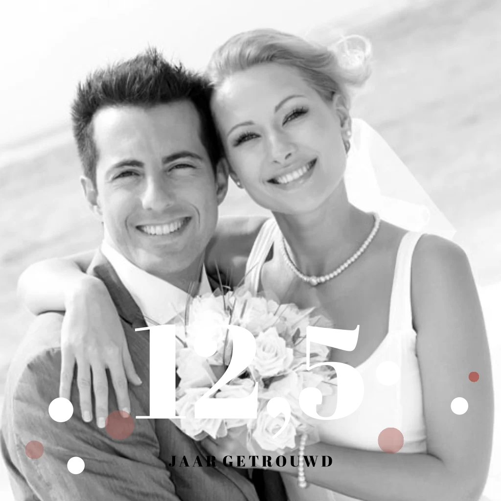 Gaan jullie 12,5 jarig huwelijksjubileum vieren? Unieke foto feestelijke uitnodigingskaart met zwart stippen confetti en goud folie. (24188)