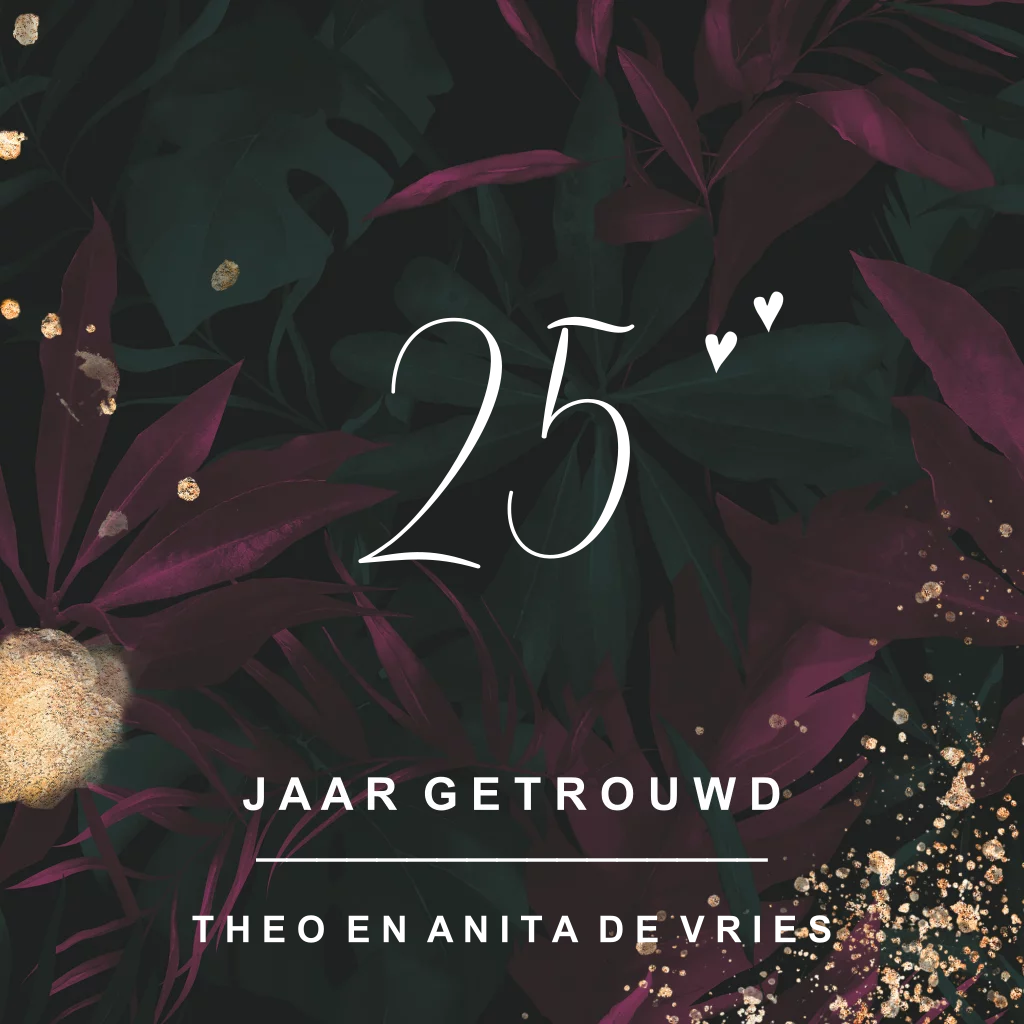 Moderne jubileum uitnodiging 25 jaar getrouwd diep paars met bloem. (23907)