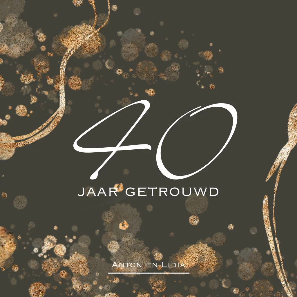 Uitnodiging voor een 40 jaar huwelijksjubileum feestje. Warme bruine kleur en confetti. (23552)