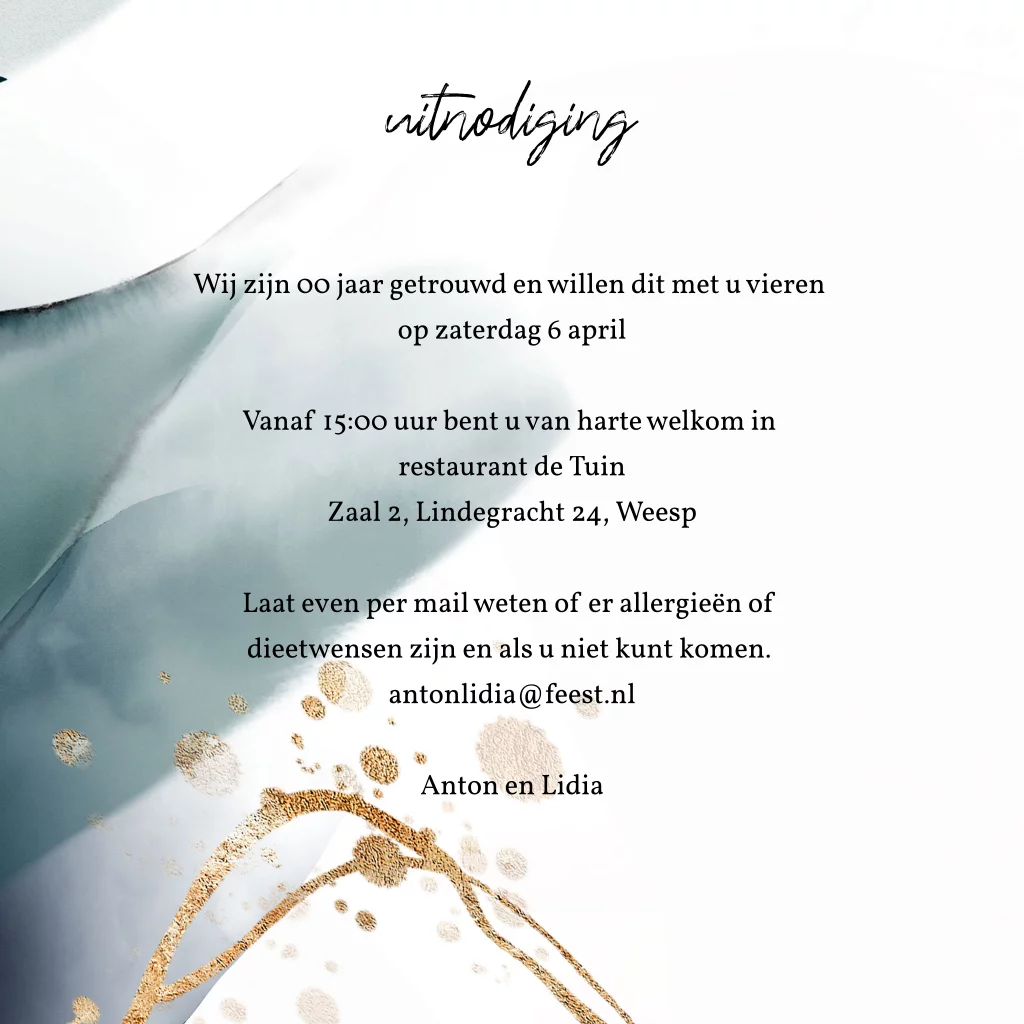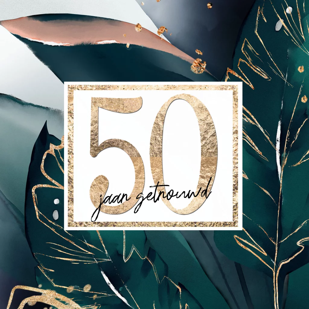 Supermooie uitnodiging 50 jaar getrouwd groen met goudkleurige bloemen. (23287)