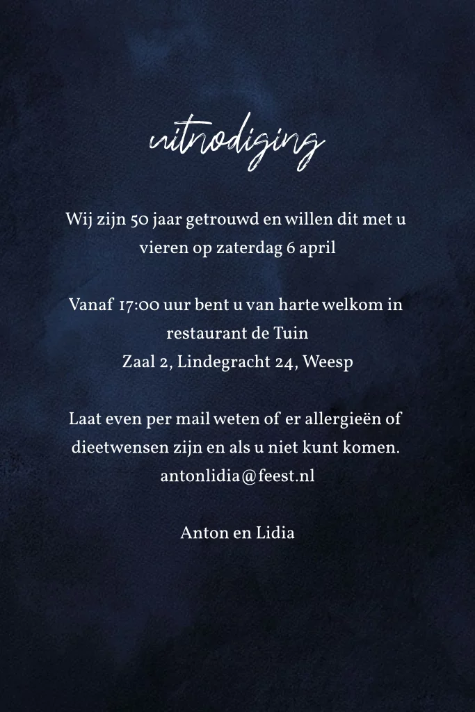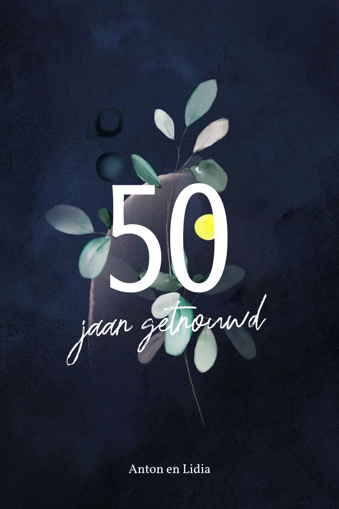 Jubileumkaarten 50 jaar getrouwd blauw met bloemen