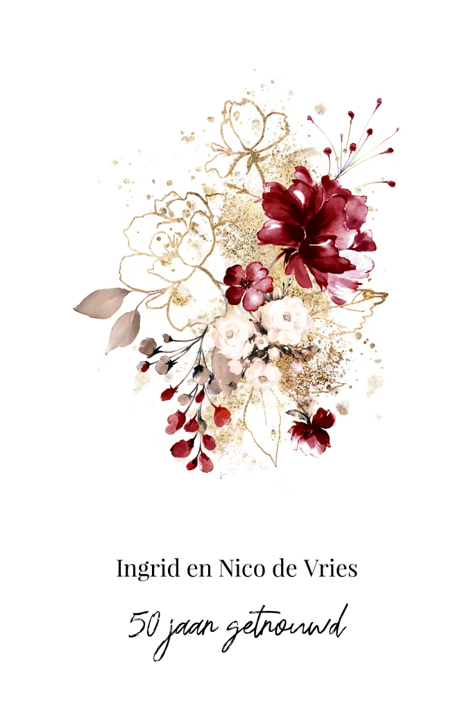 50 jaar getrouwd uitnodiging rood gouden bloemen