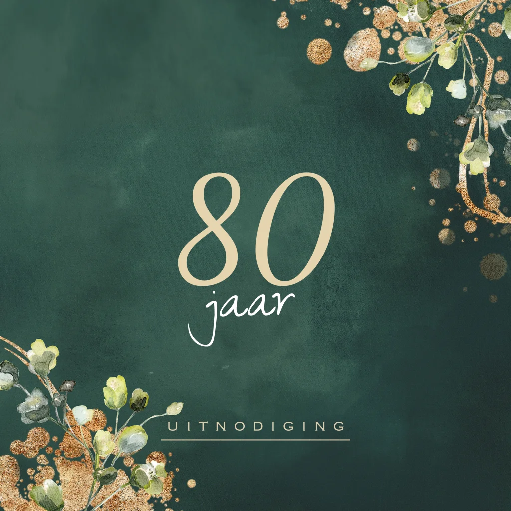 80 jaar verjaardag uitnodiging groen met goudlook jaartal