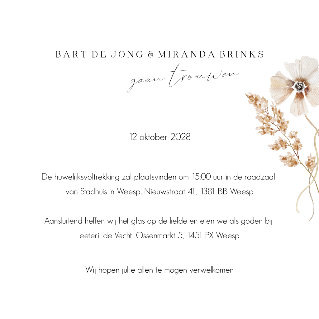 Botanische trouwkaart met bloemen