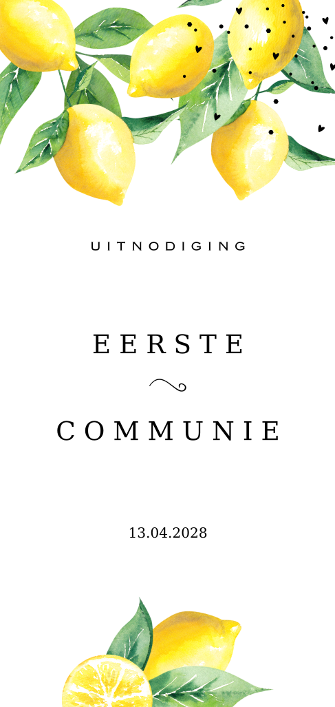 Communie uitnodiging met ronde hoeken citroenen en blaadjes