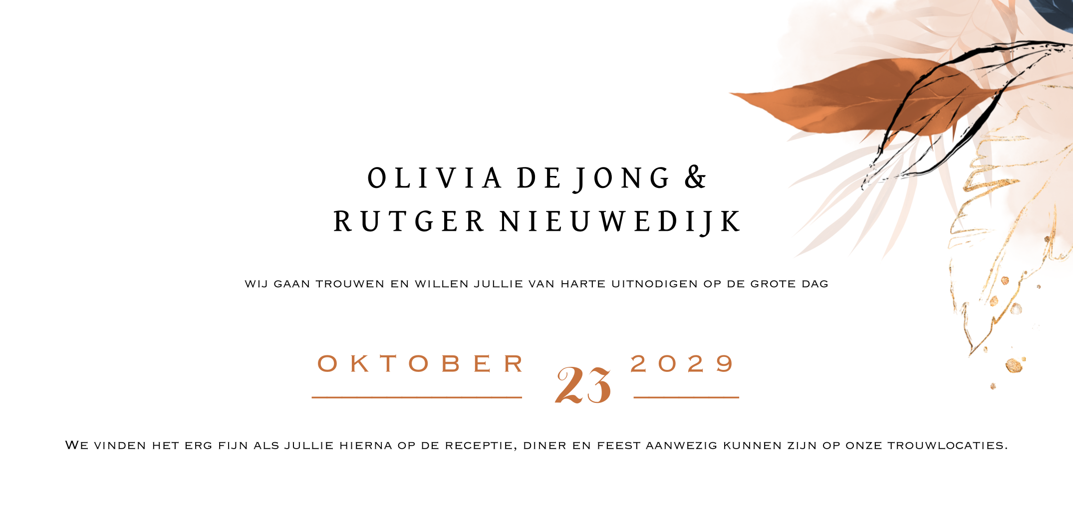 Trouwkaart met bladeren en exotisch tintje. (23558)