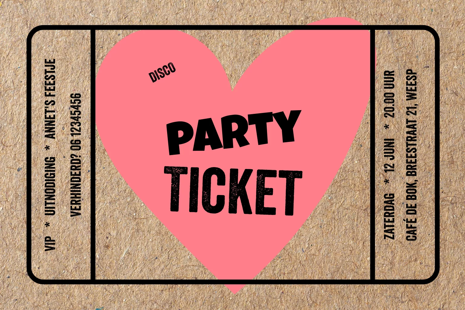 Feestelijke party ticket uitnodiging disco hart en kraftlook. (23544)