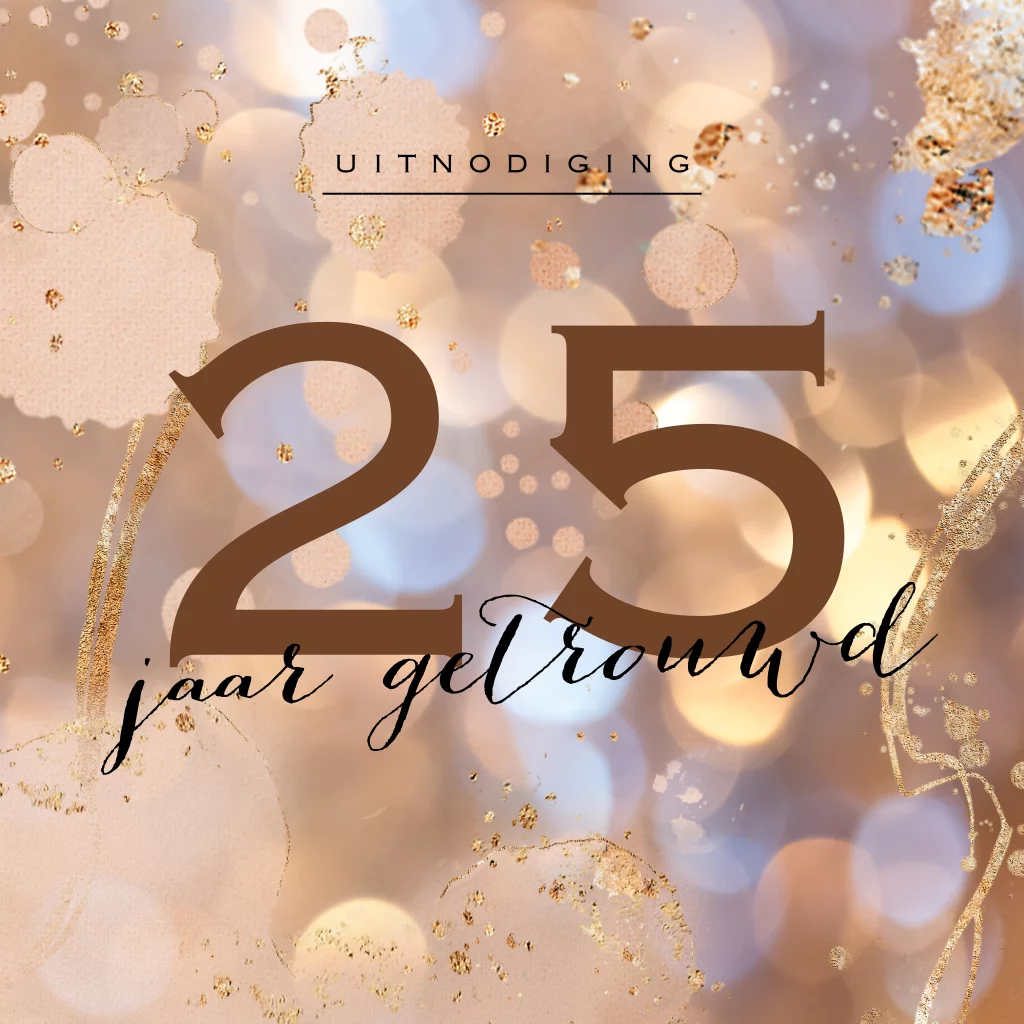 25 jaar getrouwd uitnodigingskaart voor een jubileum met warme kleuren en goud look. (23718)