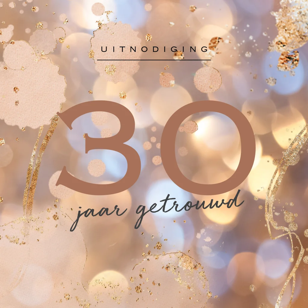 30 jaar getrouwd uitnodiging voor een jubileum met warme kleuren en goud look. (23718)