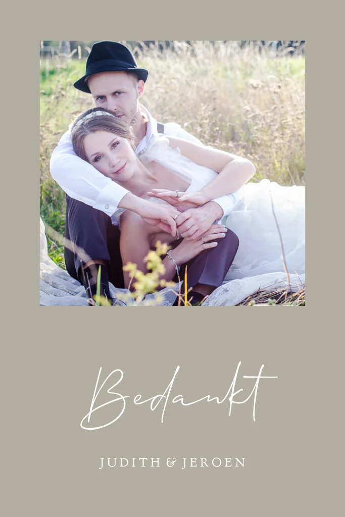 Moderne staande bedankkaart met foto in aardetint. (24330)