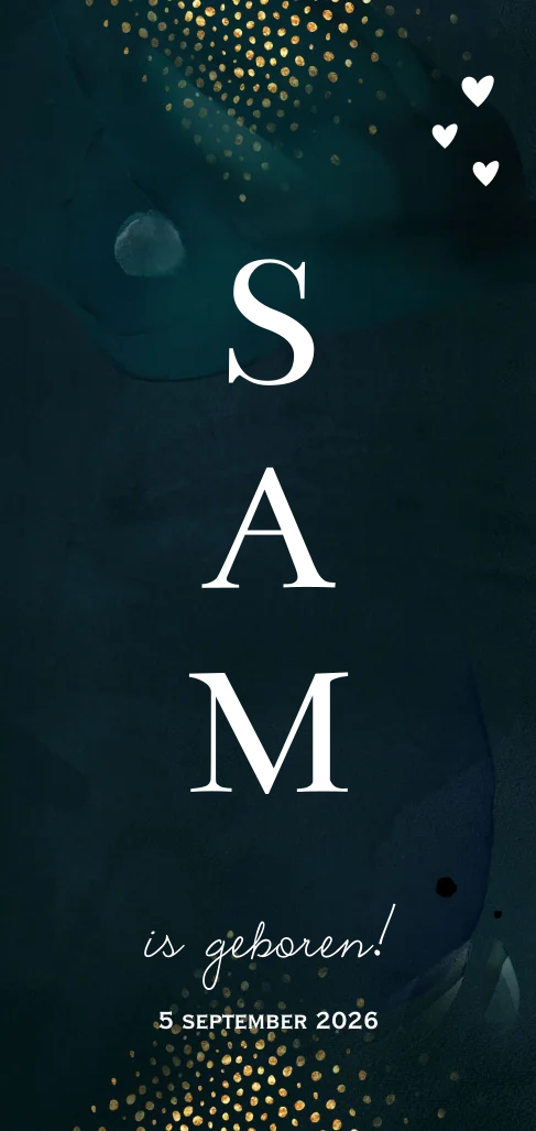 Geboortekaart met naam in goudfolie en groene achtergrond
