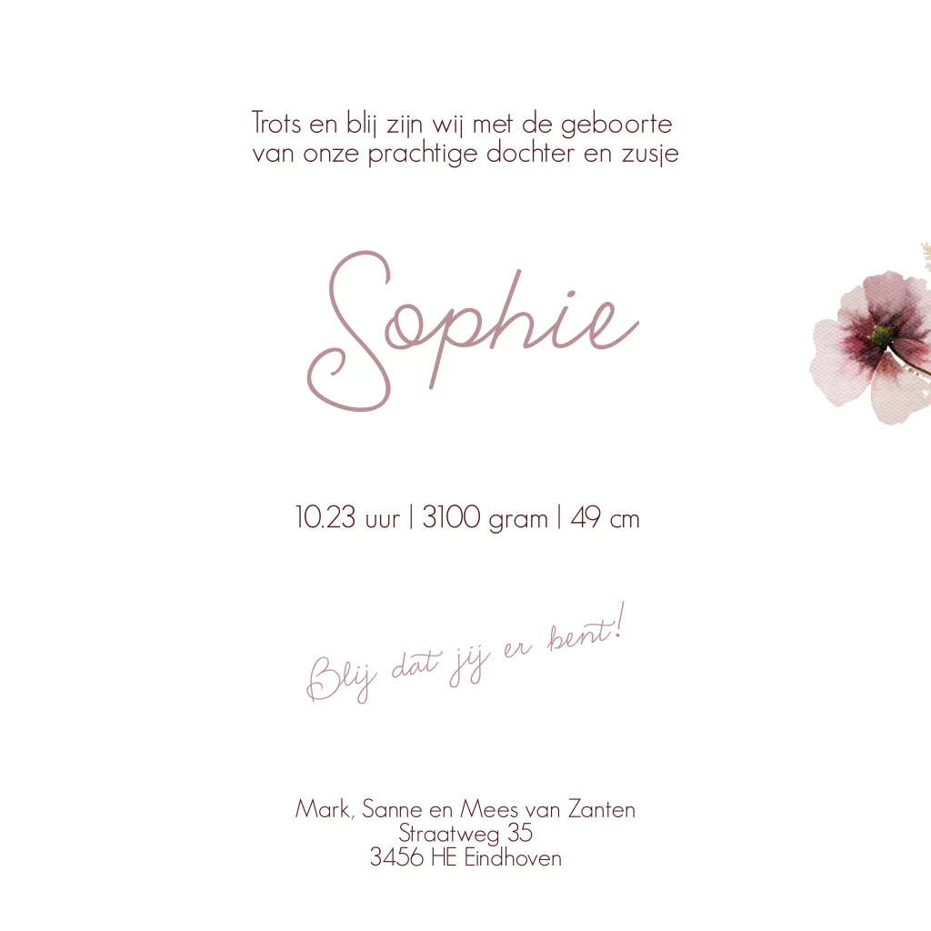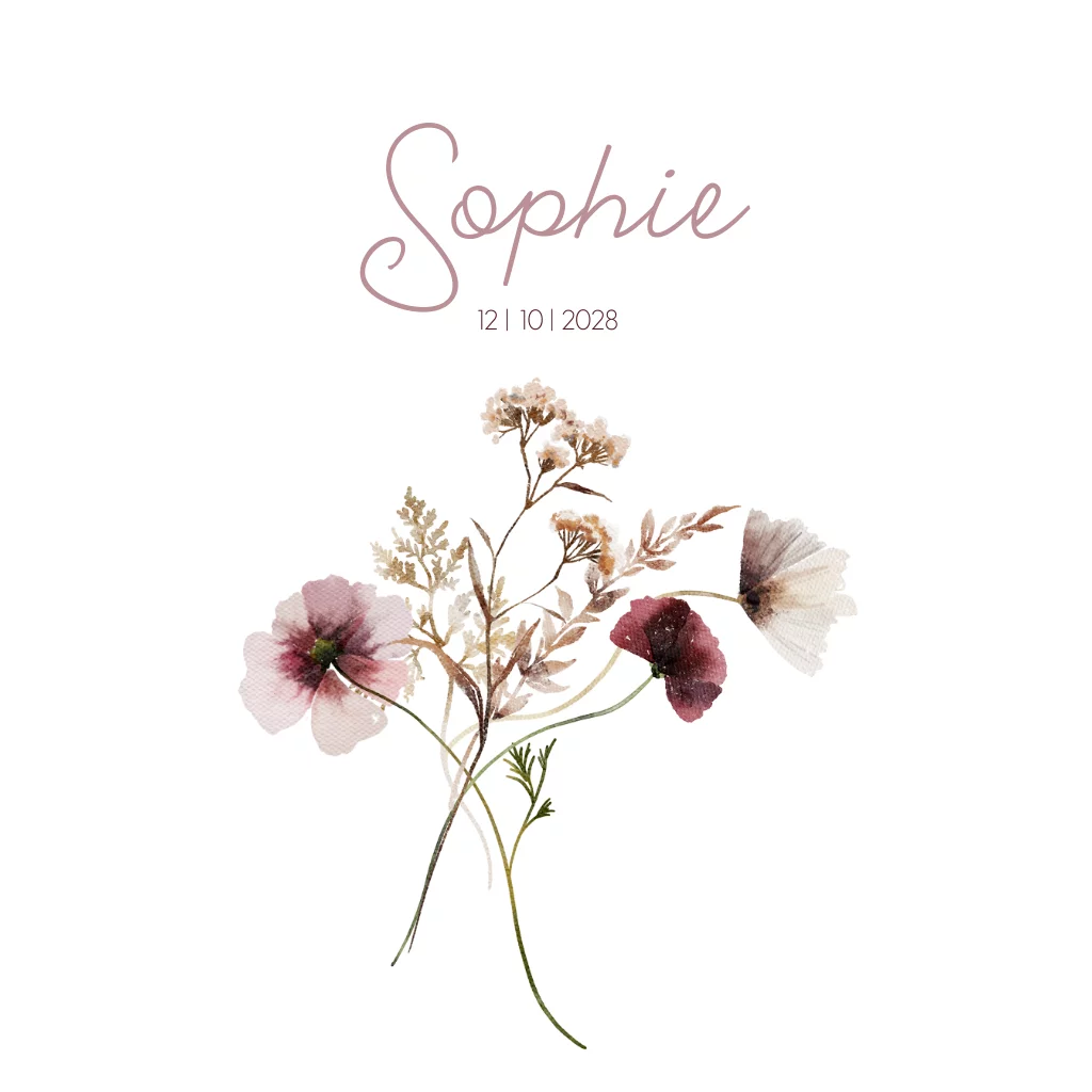 Prachtig geboortekaartje voor een meisje met de geboortebloem voor de maand augustus. De klaproos. (23347)
